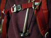 私がよく使っているのですが、傘の柄の部分を、ザックのチェストベルトで留めてしまうそいうもの。これで、けっこう固定されてしまいますが、歩いていると下にずれてきますので、小さなカラビナを使って、柄についている紐とザックのベルトに固定してしまえば、手を離してもずれずに歩くことができます。あとは補強でストックなどをちょっと伸ばしてザックにつけておけば、傘を支持して安定します。